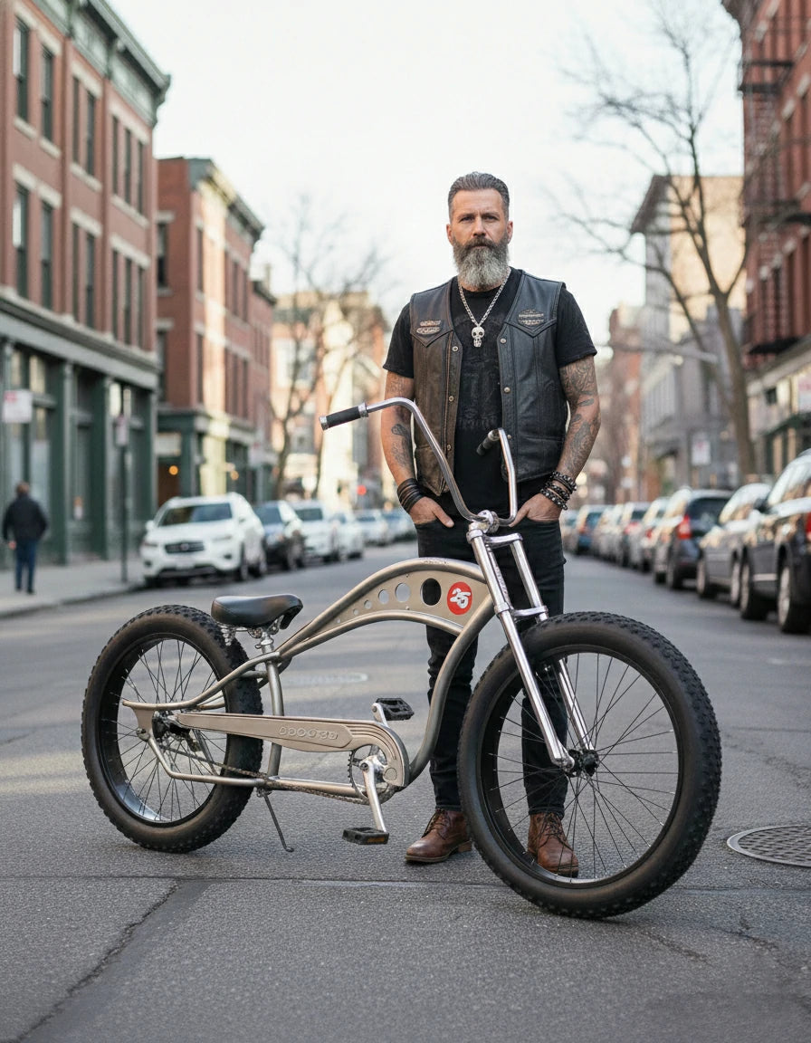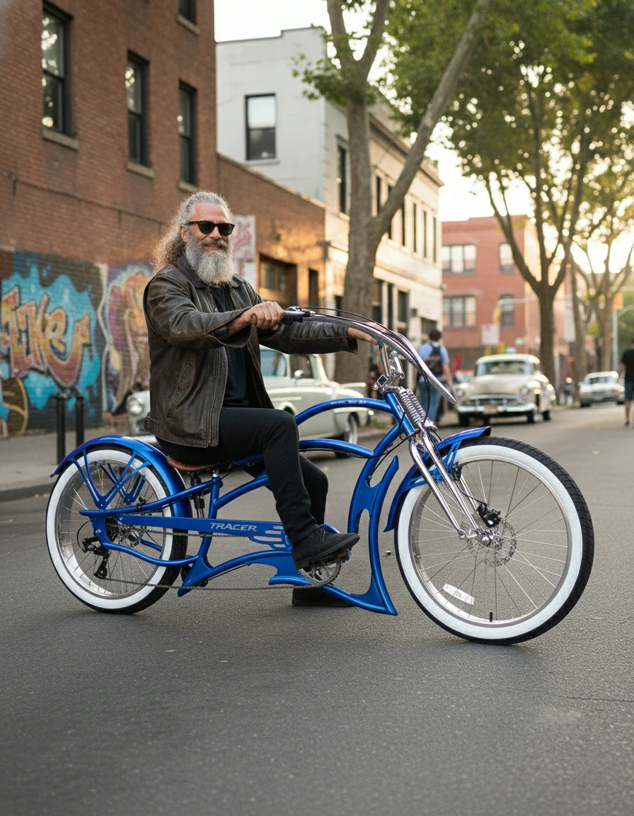 After buying my Chopper bike, I joined a few group rides with other cyclists. Its vintage design really turns heads. The bike rides super stable, and the upright seating position is comfortable. Cruising around the city and countryside with everyone was so relaxing and fun—I had a great time.