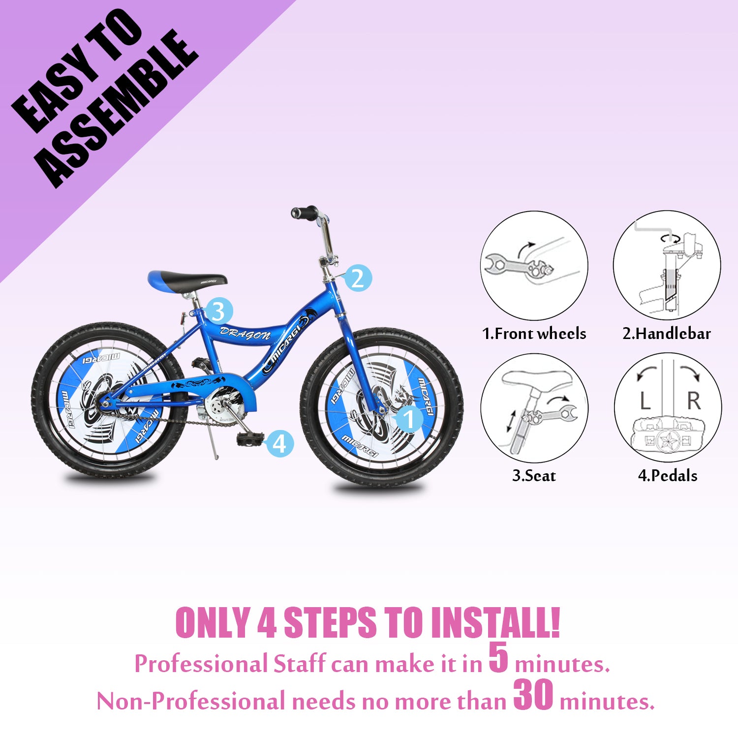 5. 【EASY INSTALLATION! 】The kids bike comes with 85% assembled body and the basic assembly is needed, only pump needed for tire. IF YOU HAVE ANY QUESTION ABOUT ASSEMBLY, PLEASE CONTACT US.