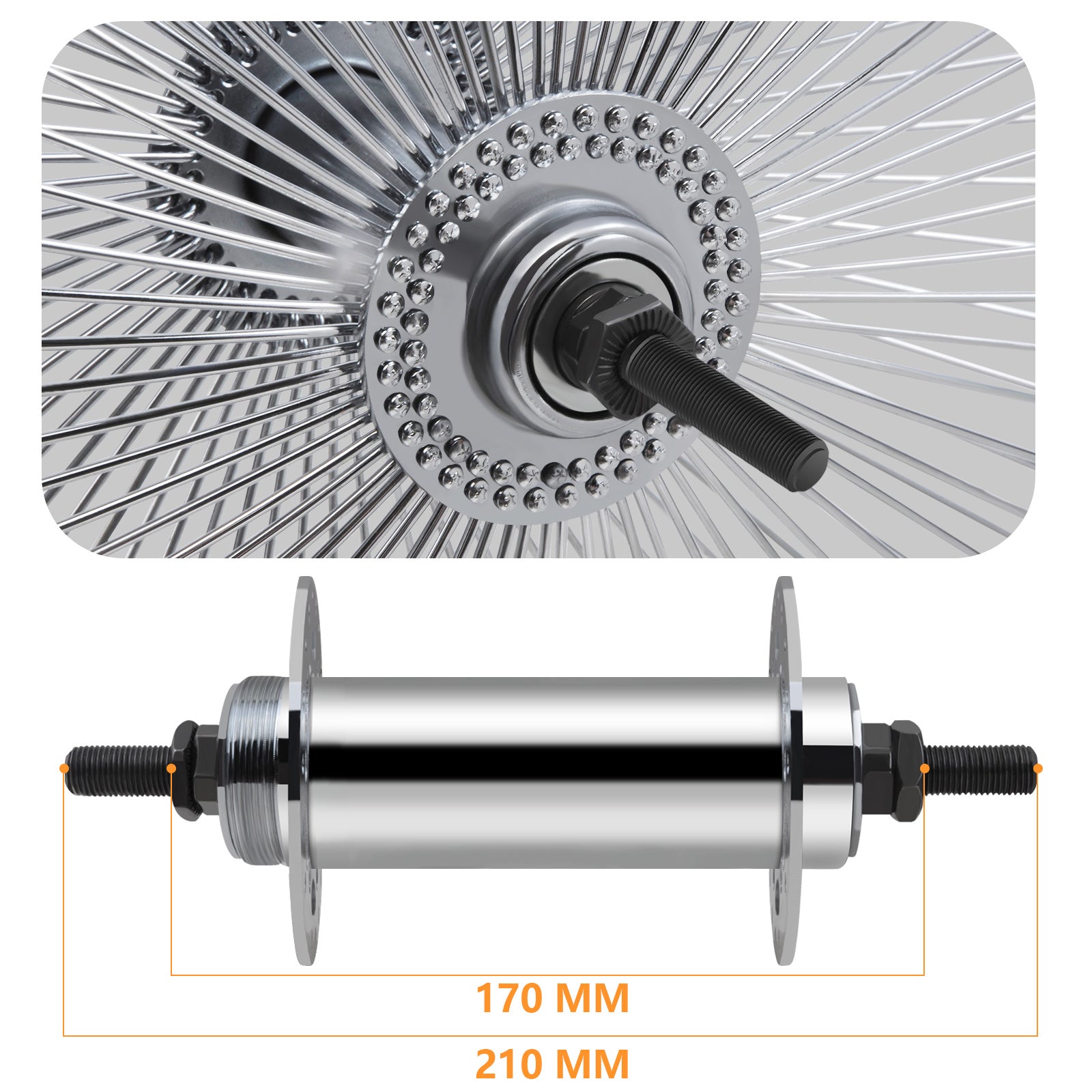 • Rear wheel 3/8"*14G*140H*170*210MM,DISC BRAKE
