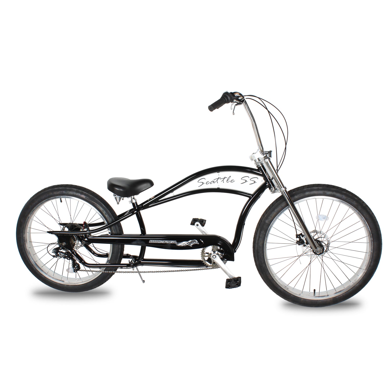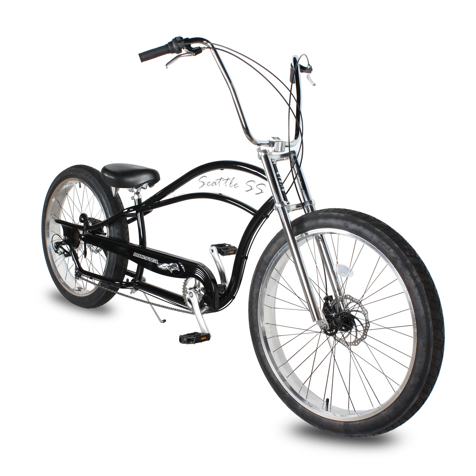 - Welcome to explore the Micargi 26 Seattle SS Complete Cruiser Bike - an all-terrain wonder designed to provide an unparalleled riding experience. Equipped with a sturdy Tracer Stretch STEEL frame with rack mount and disc braking, this bike ensures stability and reliability during your adventures. The Tracer Triple Tree Fork with aluminum cover guarantees your safety on the road.