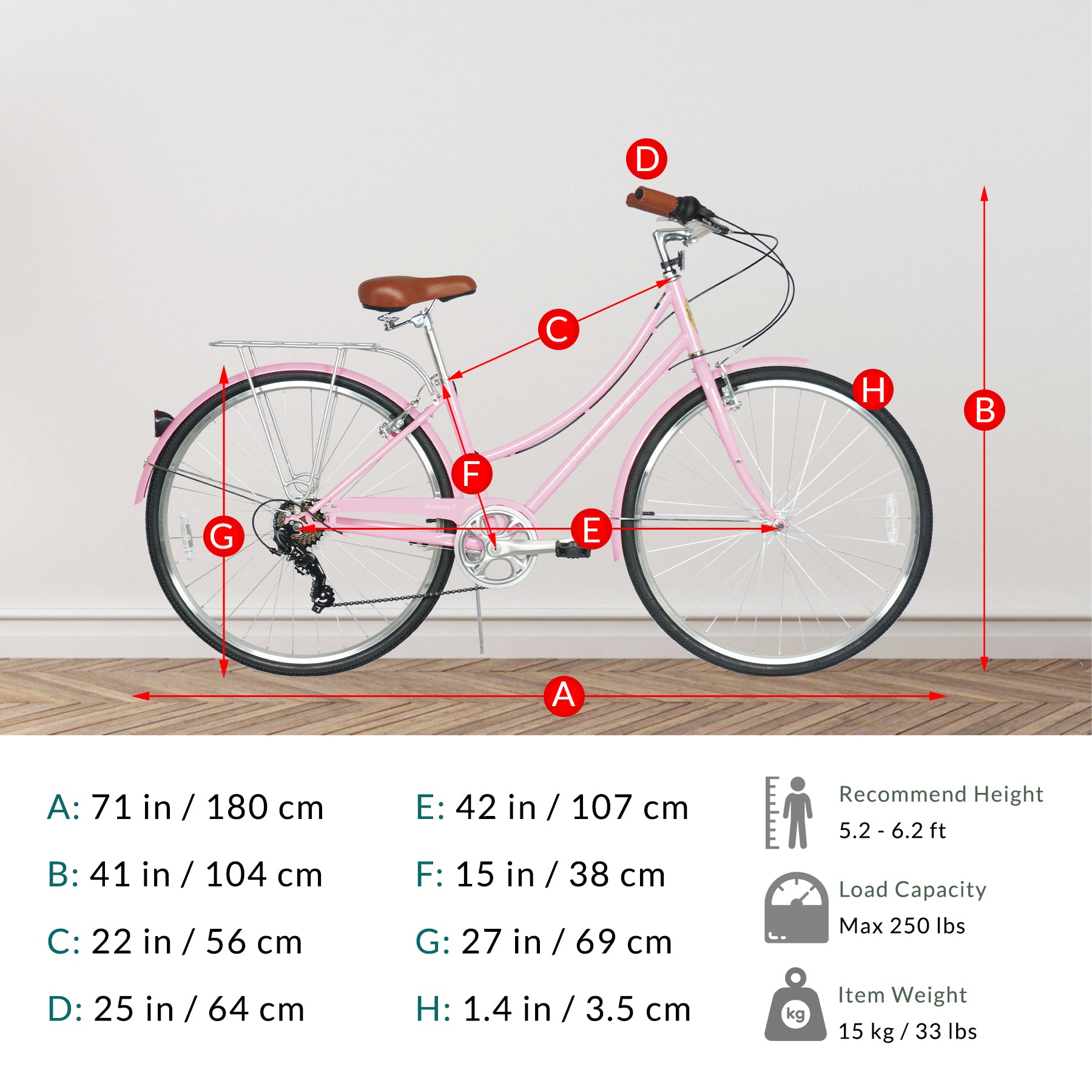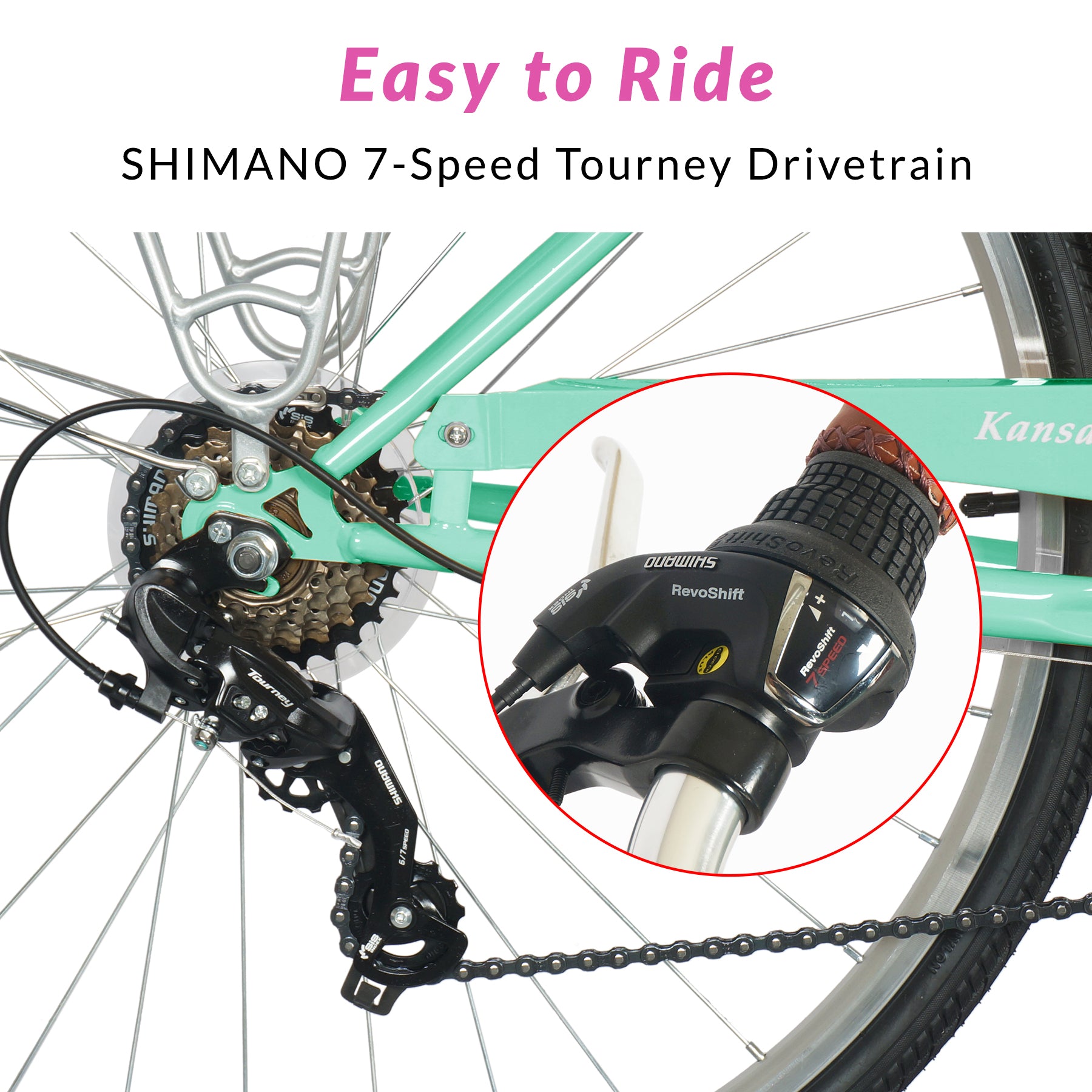 - Shimano 7-speed gearing system for easy city riding and smooth shifting