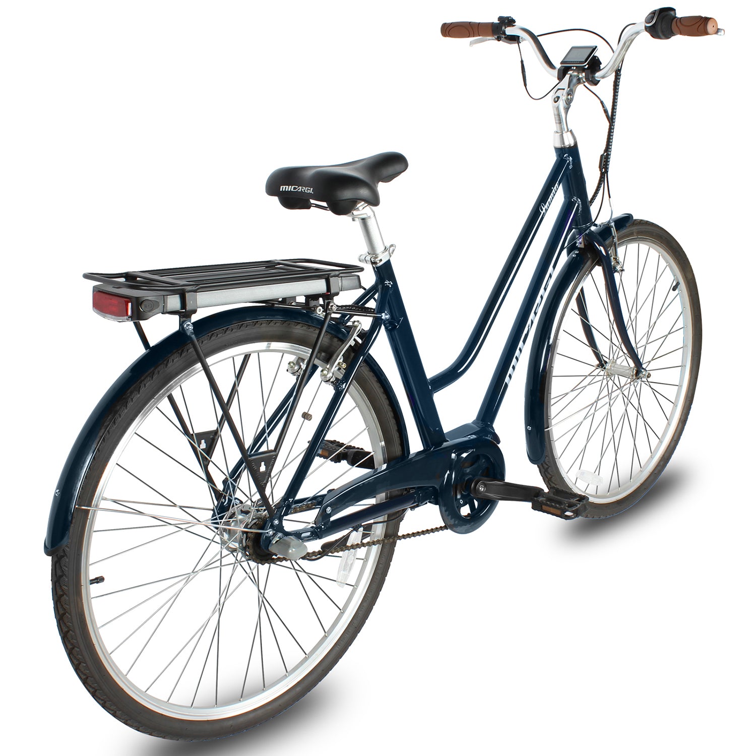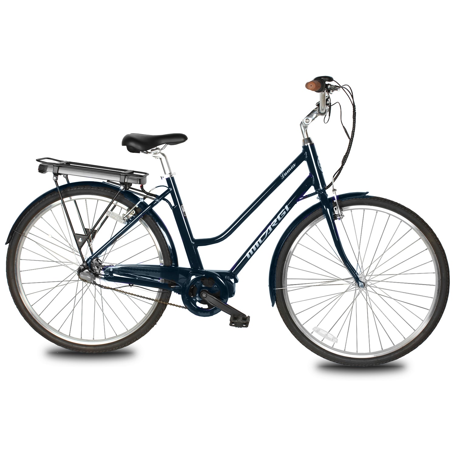The Micargi Lumia is perfect for those who are looking for a mid drive motor city bike. The Lumia carries a 250W mid drive motor and 36V 7.8 Ah Samsung litium ion battery. With the nice sleek look of a city bike riders also get a very smooth and comfortable ride with the mid drive motor. There are 5 modes of pedal assist with a range of 35 miles depending on which mode is being ridden on. The Micargi Lumia comes paired with 2 keys to lock the battery in place and battery charger. The Micargi Lumia uses the Shimano internal 3 speed hub system and front and rear disc brakes for maximum braking power.